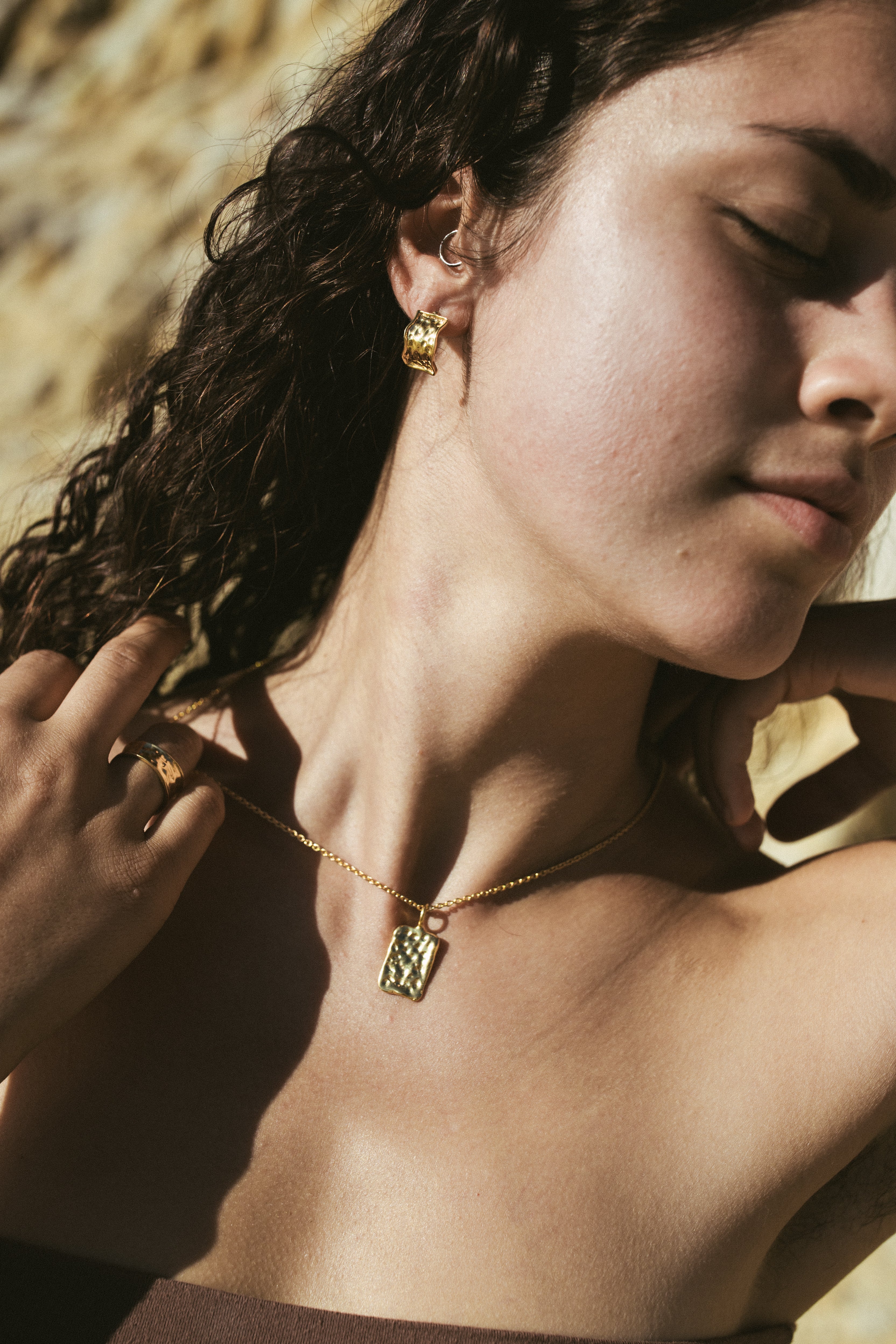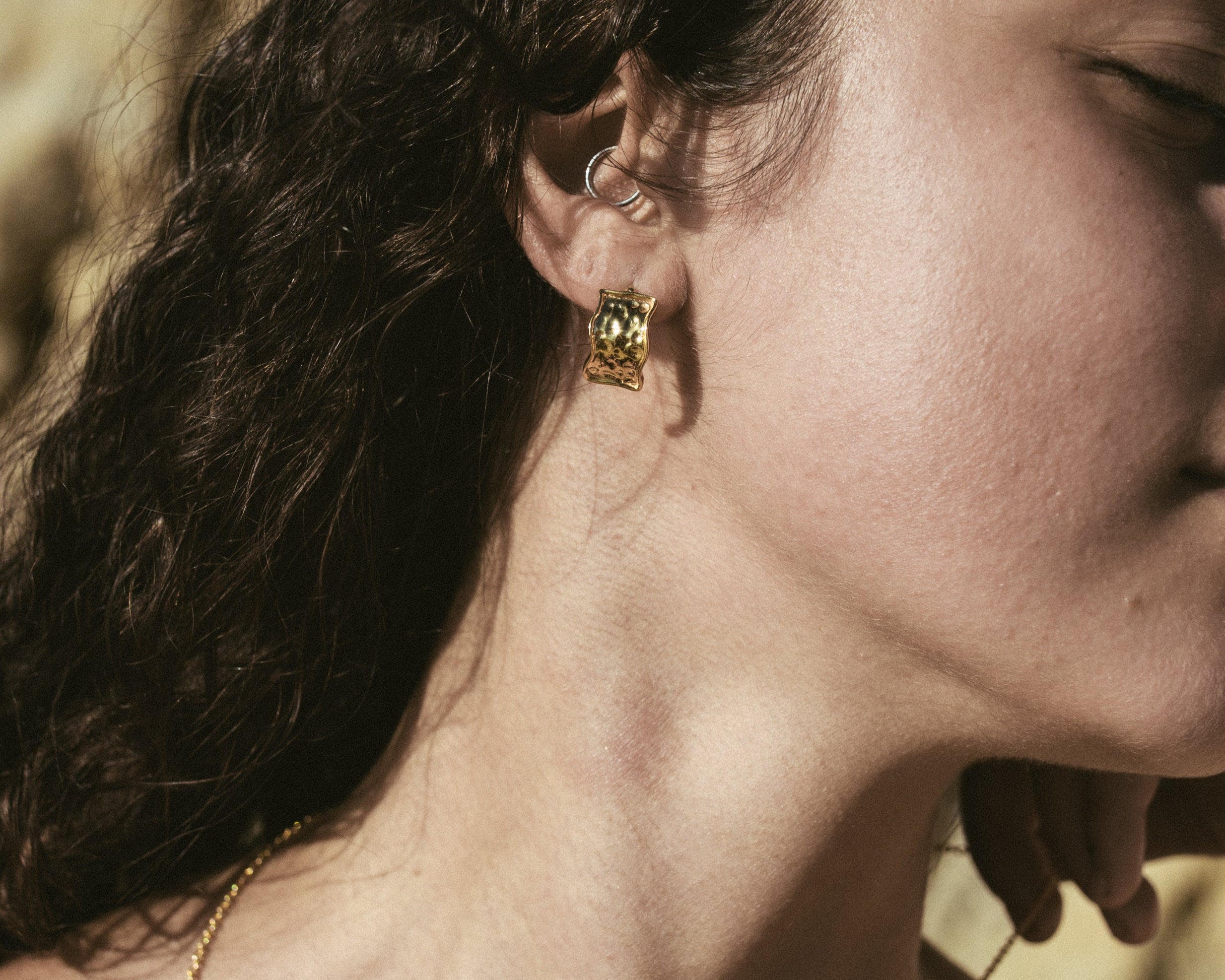 A modern twist on classic square studs with a gentle curve that hugs the ear. Subtle and sophisticated.